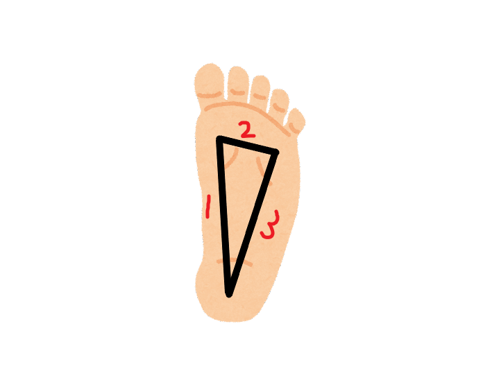 足の横アーチ(図の2)が消失することも重要なポイントです。